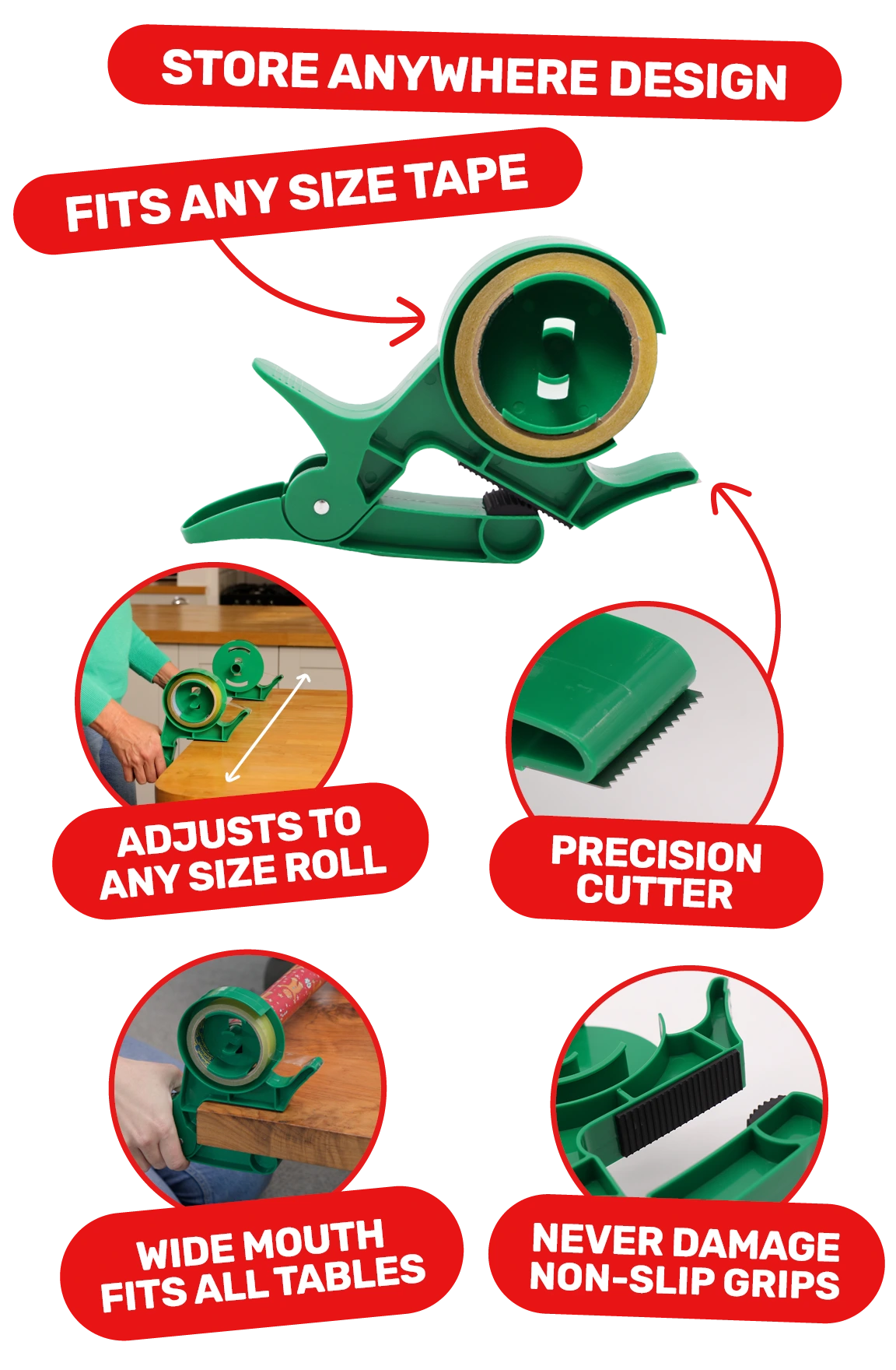 Designed to fit ALL SIZESof gift wrap, kraft paper and more