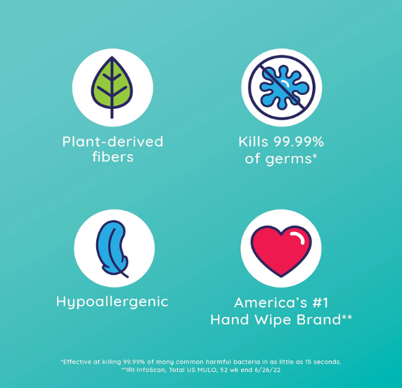 - KILLS 99.99% OF GERMS* — While gently wiping away dirt and messes